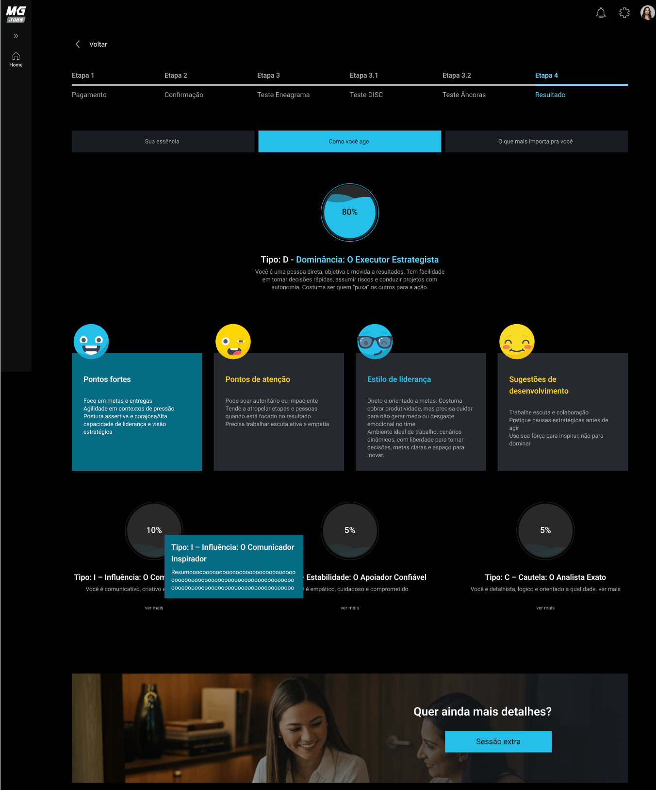 Dei continuidade ao projeto existente, aprimorando a experiência com a inclusão de novas funcionalidades e fluxos complexos. Entre as melhorias, desenvolvi o gerenciamento de candidaturas e entrevistas, o sistema de integração de vagas via widget, o fluxo de consulta e comparação salarial e o dashboard para controle de serviços contratados. Também concebi o fluxo de testes de perfil profissional, permitindo que o usuário realize e visualize seus resultados diretamente na plataforma, em uma experiência intuitiva, eficiente e consistente com o ecossistema da Network.Estruturei experiências extensas e interligadas, equilibrando estratégia, usabilidade e coerência visual para tornar a plataforma funcional, escalável e simples de navegar, mesmo em processos mais complexos.