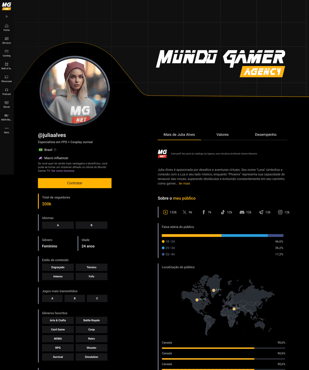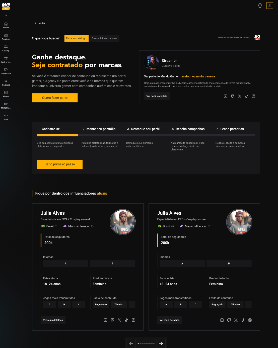 o Mundo Gamer Agency é uma plataforma que faz parte do ecossistema da Network com o objetivo de conectar marcas, influenciadores e streamers da indústria de jogos eletrônicos. Através de campanhas planejadas, ativações e parcerias estratégicas, a Agency atua como ponte entre empresas que desejam se posicionar no universo gamer e os criadores de conteúdo que representam sua audiência, fortalecendo a presença das marcas e impulsionando o crescimento do ecossistema.