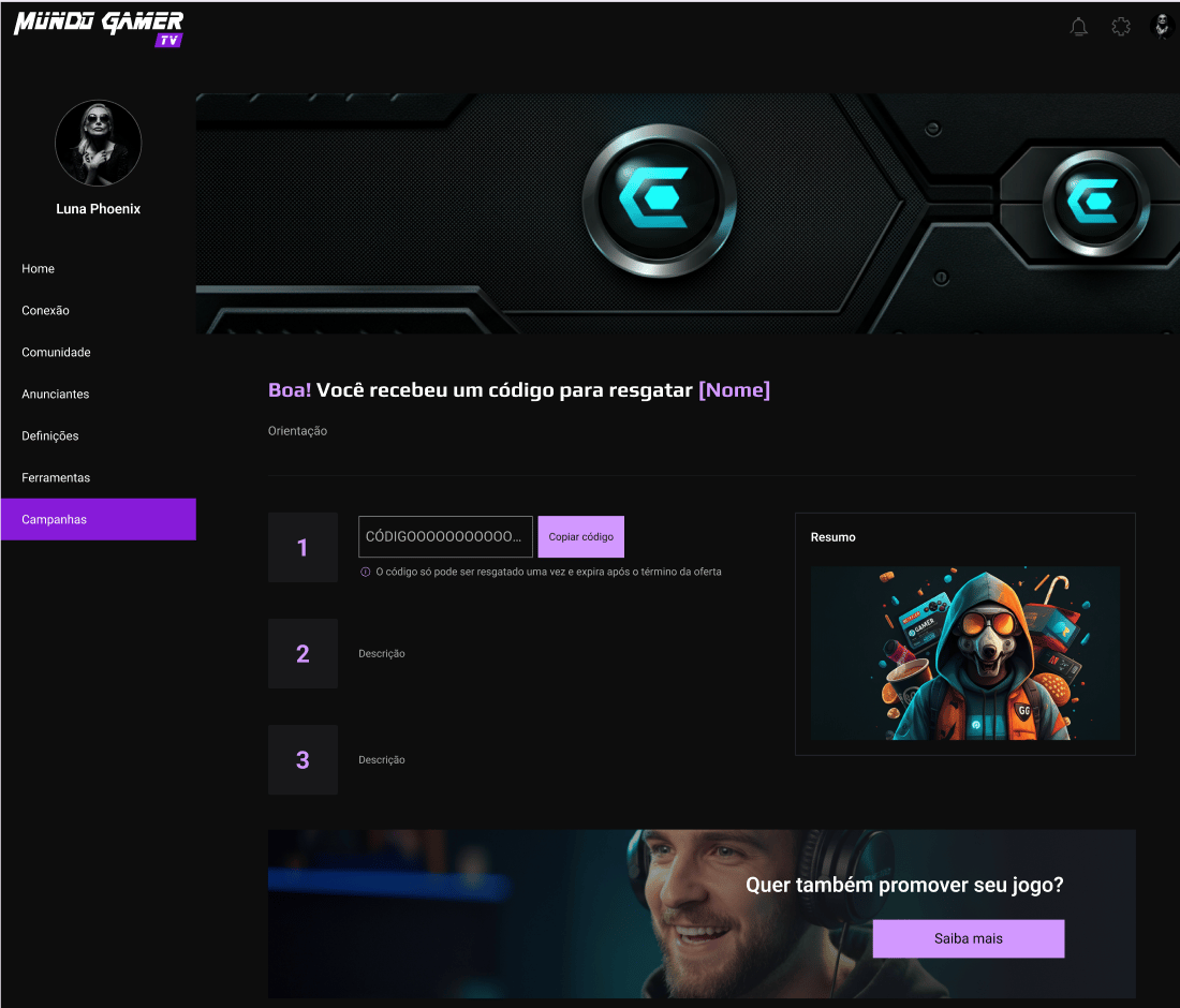 o Mundo Gamer TV é o canal de conteúdo oficial do ecossistema da Network, criado para informar, entreter e aproximar a comunidade gamer. Através de transmissões ao vivo, entrevistas, coberturas de eventos e produções exclusivas, a plataforma conecta o público às principais novidades, histórias e personalidades do universo dos games, fortalecendo a presença da marca e o engajamento do ecossistema.